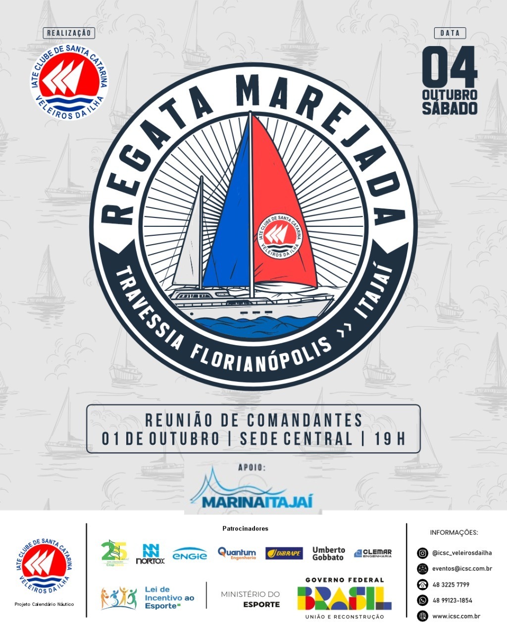 A tradicional Regata Marejada, válida como 7ª etapa da Copa Veleiros de Oceano 2025, reuniu um excelente número de embarcações neste sábado (4), com largada em Jurerê, Florianópolis, e chegada na enseada de Itajaí. O evento, organizado pelo Iate Clube de Santa Catarina – Veleiros da Ilha em parceria com a Marina Itajaí, reforçou o espírito competitivo e de confraternização entre as tripulações que vêm movimentando o calendário náutico catarinense.