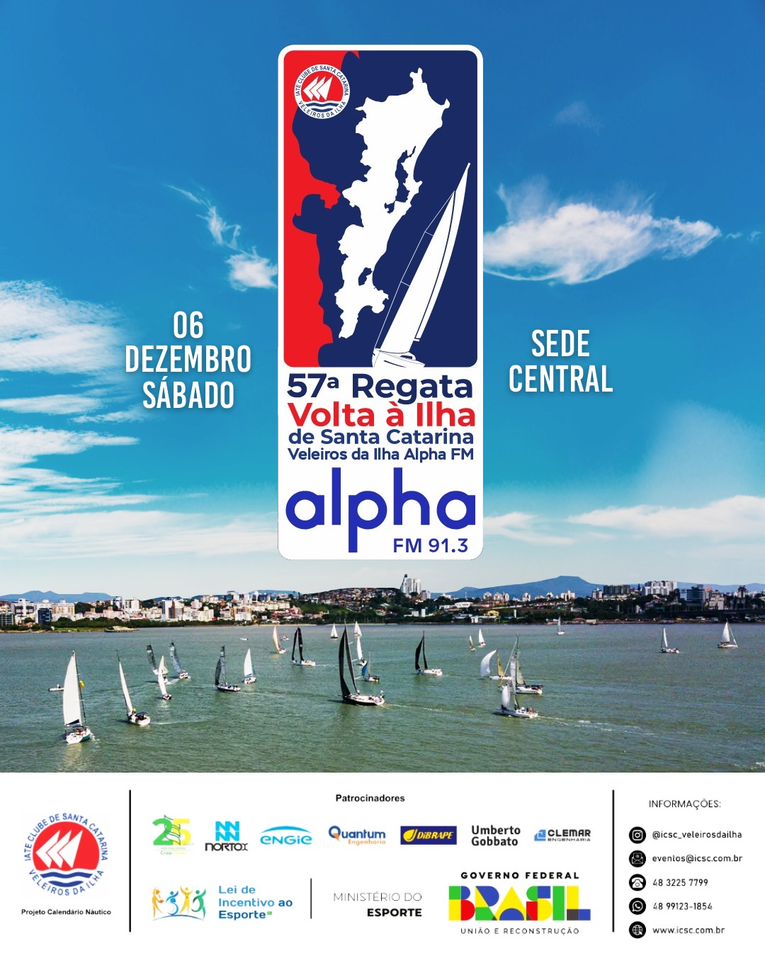 A Regata Volta à Ilha de Santa Catarina Veleiros da Ilha Alpha FM, realizada neste sábado (6) e válida como última etapa da Copa Veleiros de Oceano, encerrou a temporada com uma edição marcada por intensidade, técnica e resistência. Sob vento nordeste entre 20 e 25 nós, em uma das condições mais duras dos últimos anos, as tripulações enfrentaram longos trechos de contravento em quase toda a volta na Ilha. O veleiro Catuana Kim, comandado por Paulo Cocchi, mostrou grande desempenho e cruzou em primeiro lugar a linha de chegada na Baía Norte, após 9h43m30, garantindo o troféu Fita Azul da edição 2026 e o título da categoria BRA-RGS.