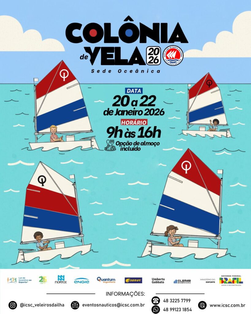 O Veleiros da Ilha promove, entre os dias 20 e 22 de janeiro de 2026, mais uma edição da sua tradicional Colônia de Vela, na Sede Oceânica.