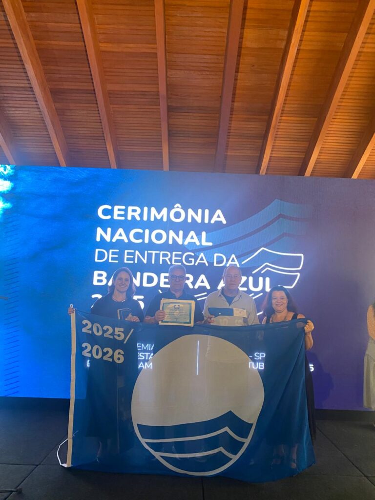 O Iate Clube de Santa Catarina (ICSC) – Veleiros da Ilha alcançou uma marca histórica ao receber, pelo décimo ano consecutivo, a certificação Bandeira Azul para a Sede Central. A cerimônia da temporada 2025/2026 foi realizada nesta sexta-feira, 31 de outubro, no Iate Clube Santos – Sede Guarujá (SP), e contou com a presença do Comodoro Ildefonso Witoslawski Junior e do Diretor Financeiro Saul Capella, que representaram o Clube no evento.